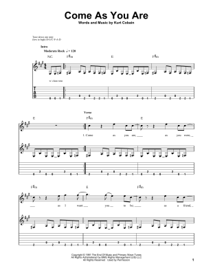 Come As You Are - Sheet Music for Nirvana