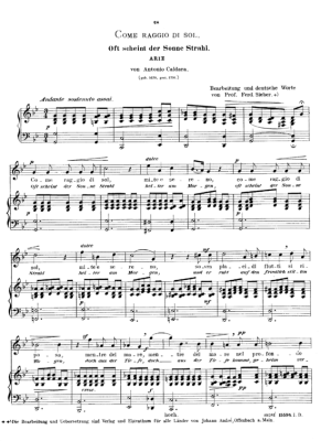 Come raggio di sol - Sheet Music for High Voice and Piano Antonio Caldara