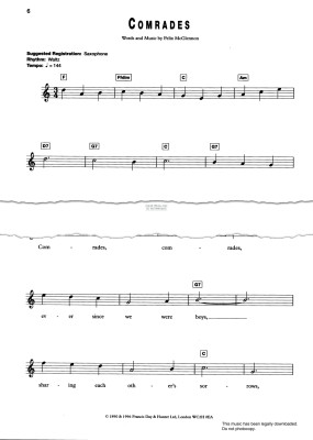 Comrades, a war song, composed by Felix McGlennon in the key of C Major arranged for voice and keyboard.