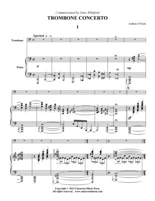 Concerto - Sheet Music for piano + trombone Anthony O'Toole