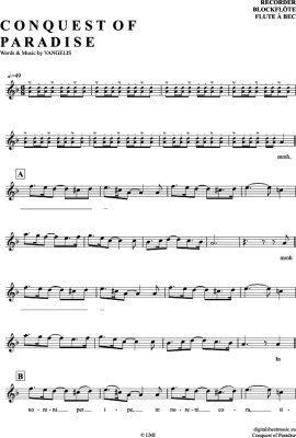 Conquest Of Paradise - Sheet Music for recorder Vangelis
