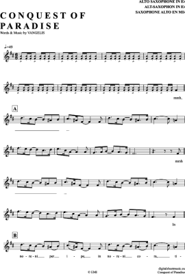 Conquest Of Paradise - Sheet Music for Alto Saxophone Vangelis