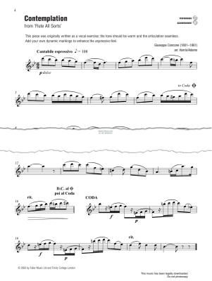 Contemplation, composed by Giuseppe Concone arranged by Sally Adams and Paul Harris and selected by Sally Adams for flute with piano accompaniment in digital sheet music format.