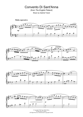 Convento Di Sant'anna (from The English Patient) - Sheet Music for Gabriel Yared