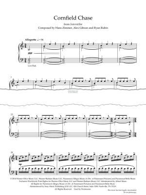 Cornfield Chase (from 'Interstellar'), written by Hans Zimmer, Alex Gibson and Ryan Rubin. Arranged for piano solo in digital sheet music format.