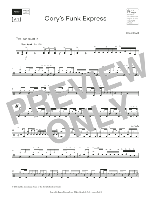 Cory's Funk Express (Grade 7, list A1, from the ABRSM Drum Kit Syllabus 2024) - Sheet Music for Jason Bowld