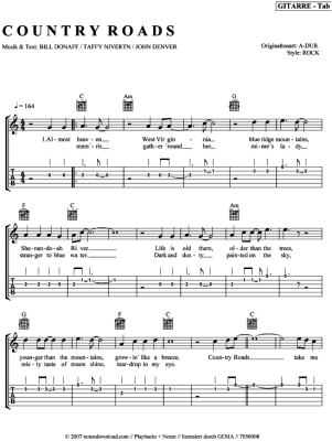 Country Roads - Sheet Music for Gitarre + TAB John Denver