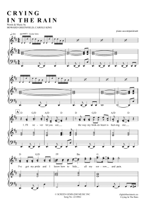 Crying In The Rain - Sheet Music for Voice with Piano Accompaniment A-Ha