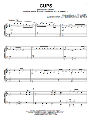 Cups (When I'm Gone) - Sheet Music for Anna Kendrick