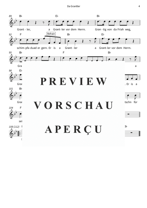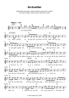 This sheet music book contains the sheet music for the song "Da Grantler" by DeSchoWieda. Edition for leadsheet in easy difficulty in B flat major.