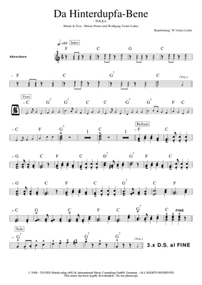 Da Hintadupfa Bene - Sheet Music for Combo + 3 Horns Hofbräuhaus-Band