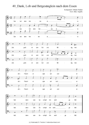Dank, Lob und Betgesänglein nach dem Essen - Sheet Music for mixed choir Johann Staden