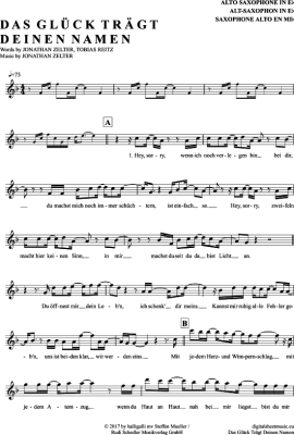 Das Glück Trägt Deinen Namen - Sheet Music for Alto Saxophone Jonathan Zelter