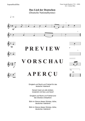 Das Lied der Deutschen - Deutsche Nationalhymne (F-Dur) - Sheet Music for soprano recorder solo Franz Joseph Haydn