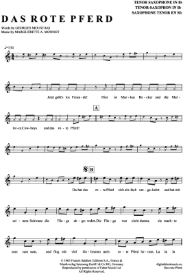 Das rote Pferd - Sheet Music for Tenor Saxophone Markus Becker (feat. Mallorca Cowboys)