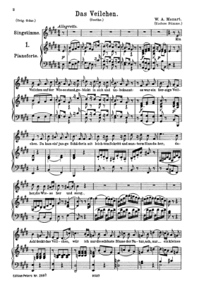Das Veilchen K.476 - Sheet Music for Medium Voice and Piano Wolfgang Amadeus Mozart