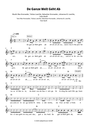 This sheet music book contains the sheet music for the song "De Ganze Welt Geht Ab" by DeSchoWieda. Edition for leadsheet in easy difficulty in F major.