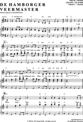De Hamborger Veermaster - Sheet Music for Piano and Voice Blaue Jungs