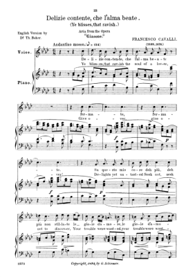Delizie contente - Sheet Music for Low Voice and Piano Francesco Cavalli