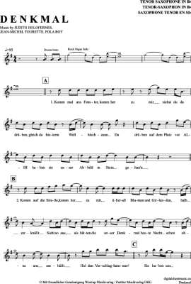 Denkmal - Sheet Music for Tenor Saxophone Wir Sind Helden