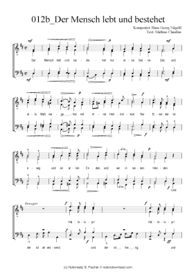 Der Mensch lebt und bestehet - Sheet Music for male choir Hans Georg Nägeli / Mathias Claudius