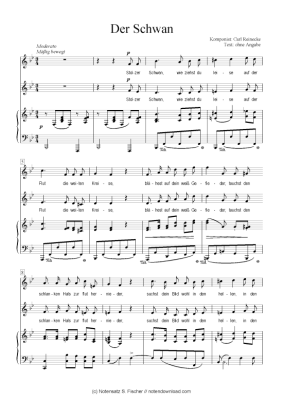Der Schwan - Sheet Music for Piano and Voice Carl Reinecke