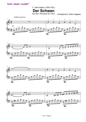 Der Schwan - Sheet Music for piano solo - easy Camile Saint-Saens (arr. A. Inagawa)