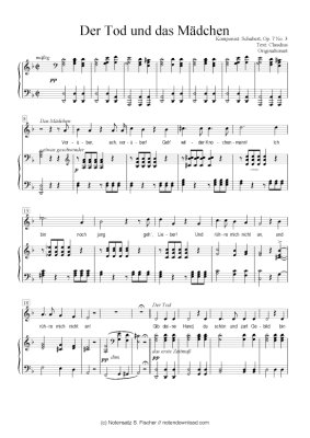 Der Tod und das Mädchen - Sheet Music for Piano and Voice Schubert, Op. 7 No. 3