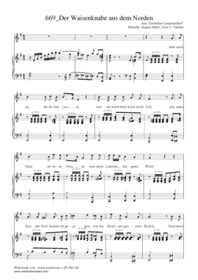 Der Waisenknabe aus dem Norden - Sheet Music for Piano and Voice Aus "Deutsches Liederlexikon" A. Härtel (1865)