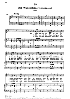 Der Wallensteiner Lanzknecht D.931 - Sheet Music for High Voice and Piano Franz Schubert