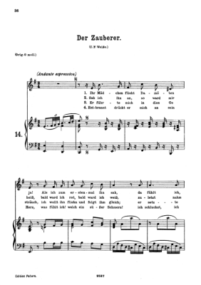 Der Zauberer K 472 - Sheet Music for Medium Voice and Piano Wolfgang Amadeus Mozart