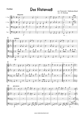 Des Hiatamadl - Sheet Music for Brass quartet aus Süddeutschland / Österreich