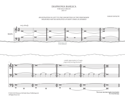 Diaphonia BasilicaΒ by Sarah Davachi, from the albumΒ Cantus, Descant. For solo organ and including performance notes. Available to print instantly at home in digital sheet music format.