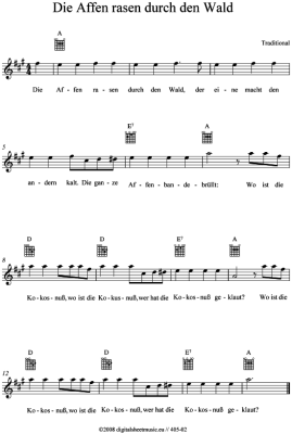 Die Affen rasen durch den Wald - Sheet Music for Trad. - Gitarre