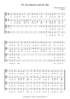Die Bauern und der Bär - Sheet Music for mixed choir Unbekannter Meister Volkslied