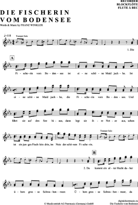 Die Fischerin Vom Bodensee - Sheet Music for recorder Margot und Maria Helwig