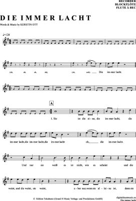 Die Immer Lacht - Sheet Music for recorder Stereoact