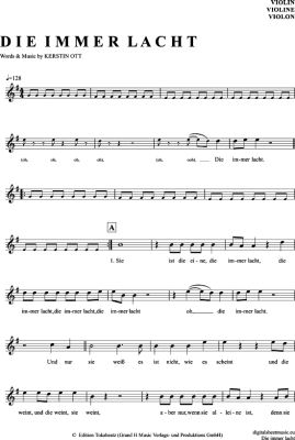 Die Immer Lacht - Sheet Music for violin Stereoact