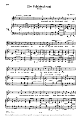 Die Soldatenbraut, Op.64 No.3 - Sheet Music for Medium Voice and Piano Robert Schumann