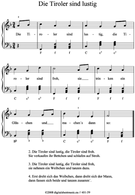 Die Tiroler sind lustig - Sheet Music for accordion Volkslied