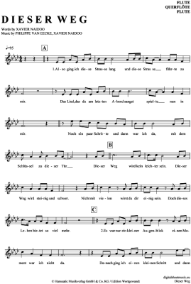 Dieser Weg - Sheet Music for transverse flute Adoro