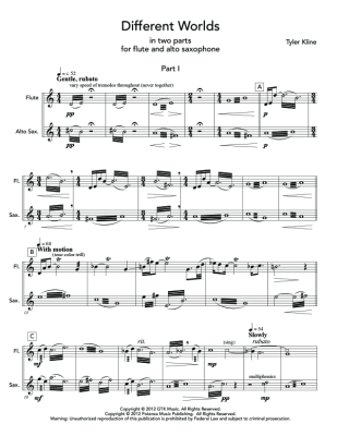 Different Worlds - Sheet Music for woodwind duet flute and alto saxophone Tyler Kline