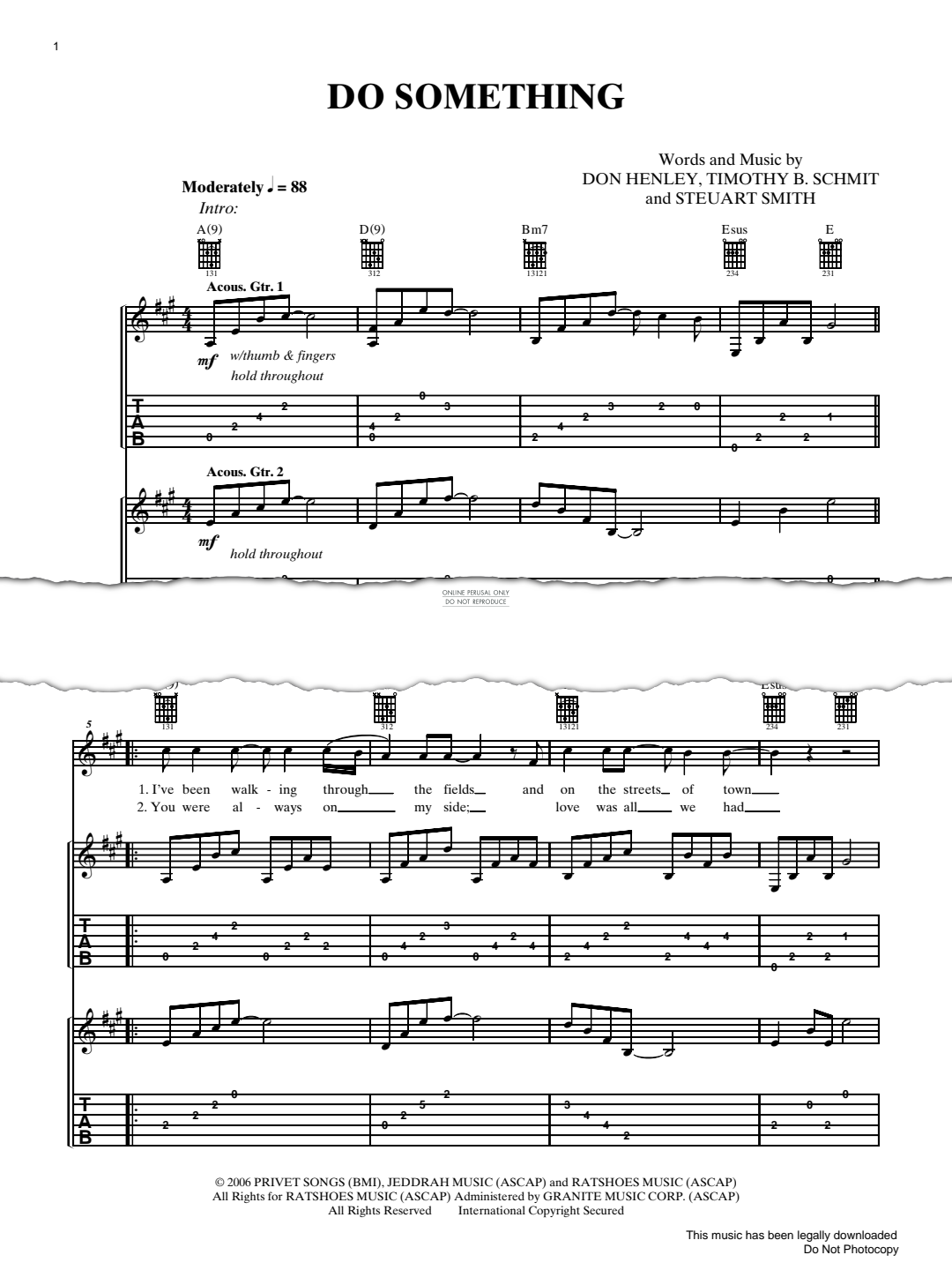Do Something, as recorded by Eagles. Arranged for voice with guitar tablature in digital sheet music format.