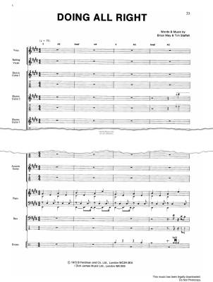 Doing All Right, as performed by Queen, from their eponymous debut album (1973), written by Brian May and his ex-bandmate in Queen's pre-cursor, Smile, Tim Staffell, arranged for full band score (bass guitar, drums, guitar, piano and voice) and available to print instantly at home in digital sheet music format. Official, artist-approved.