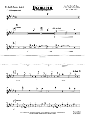 This is an Alto Sax part to replace Trumpet for the 2 Horn arrangement of 'Domino' by Van Morrison, presented by PepperHorn Music.