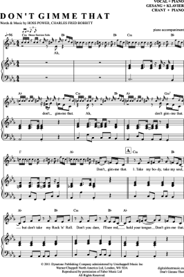Don´t Gimme That - Sheet Music for Voice with Piano Accompaniment The Bosshoss