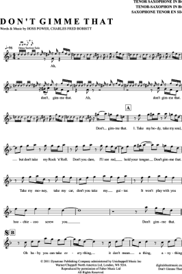 Don´t Gimme That - Sheet Music for Tenor Saxophone The Bosshoss