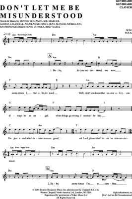 Don´t Let Me Be Misunderstood - Sheet Music for Keyboard The Animals