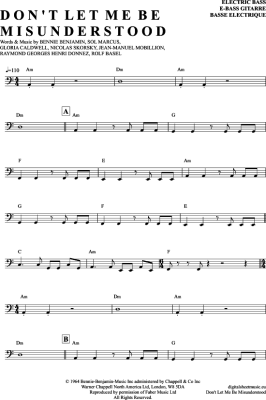 Don´t Let Me Be Misunderstood - Sheet Music for Bass Guitar The Animals