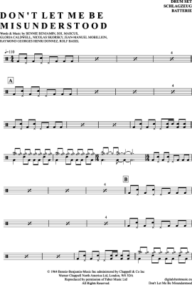 Don´t Let Me Be Misunderstood - Sheet Music for Drums The Animals